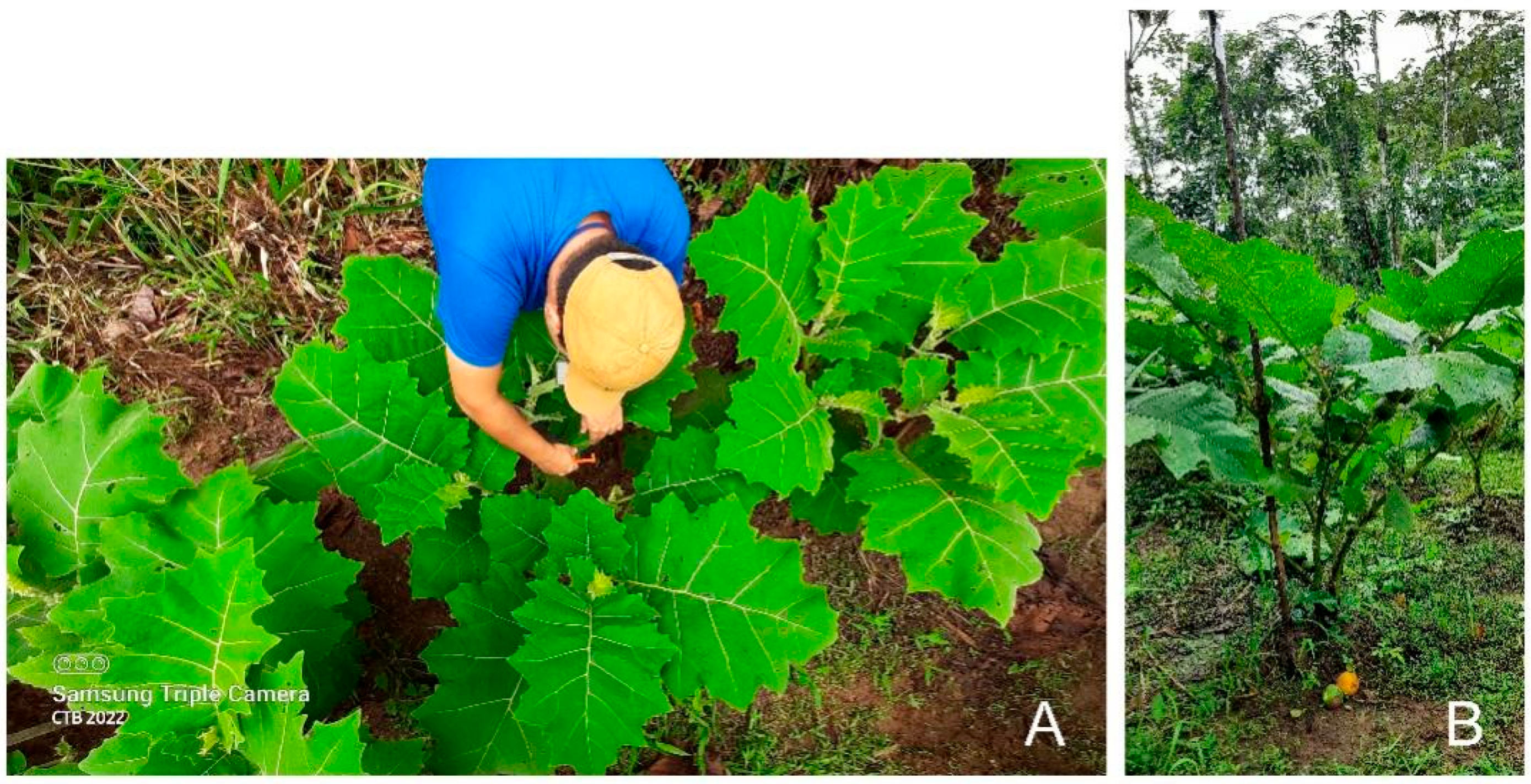 - Terrones, L.E.B.; Toribio, C.C.; Huayllas, O.C. El cultivo de cocona; Editorial Colecciones Jovic S.A.C.: Lima, Peru, 2011; p. 115. [Google Scholar]
