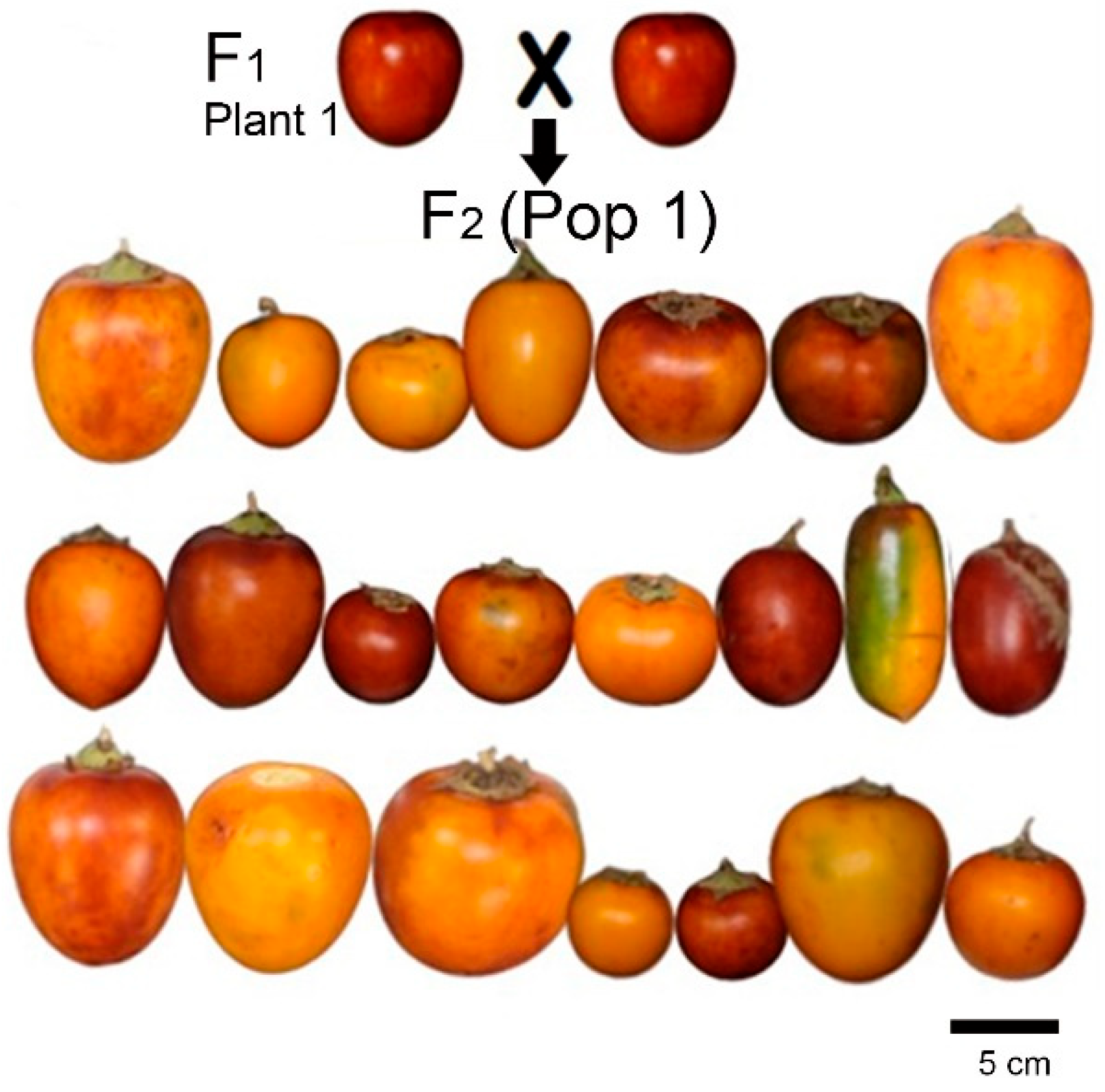 | Fruit diameter—D (cm) | 4.41 (1.31) | 4.70 (1.12) | 3.04 (0.94) | 1.37 ** | 1.66 ** |