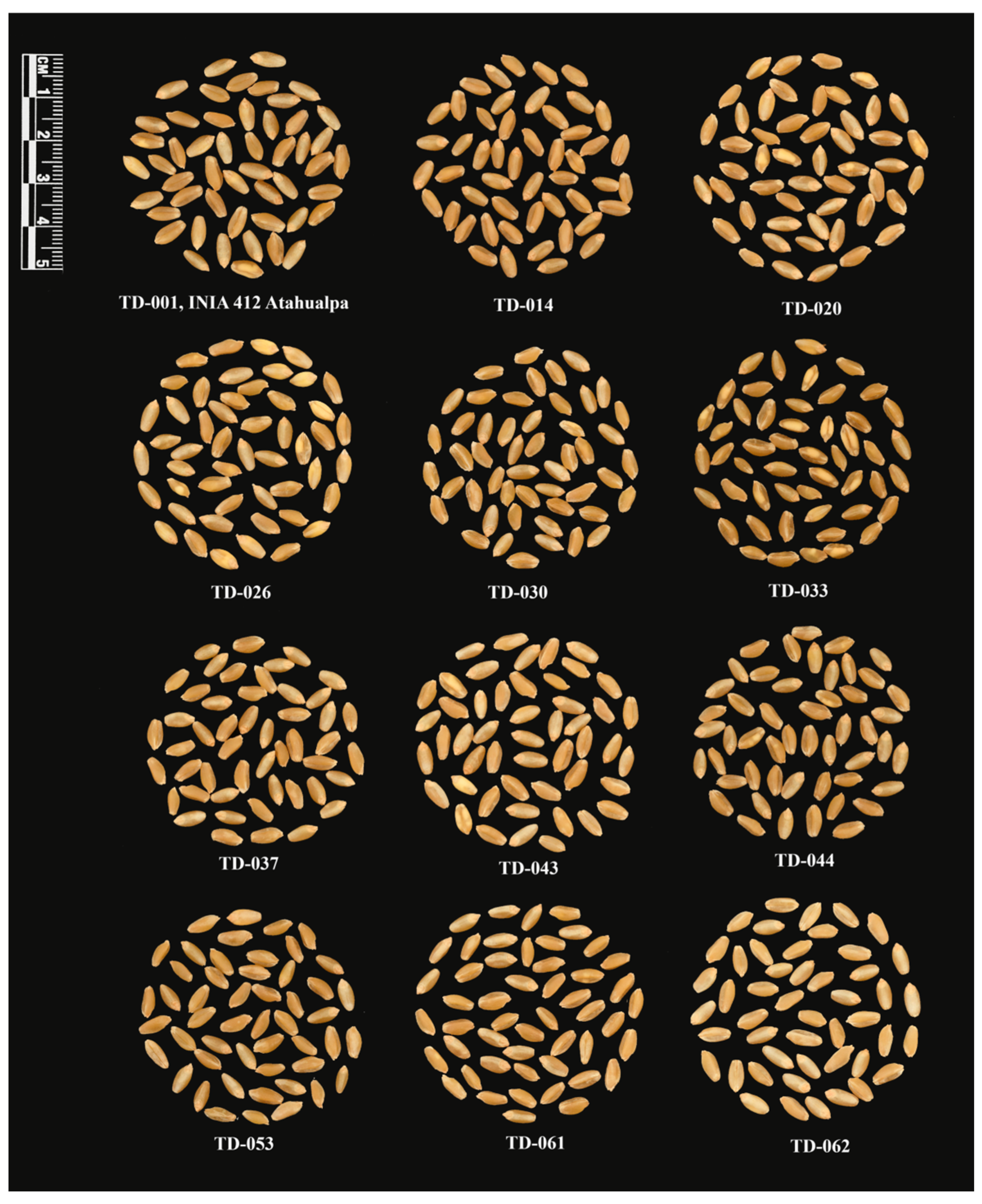 Eleven promising durum wheat genotypes and the commercial variety TD-001 (INIA 412 Atahualpa) used in the present study.