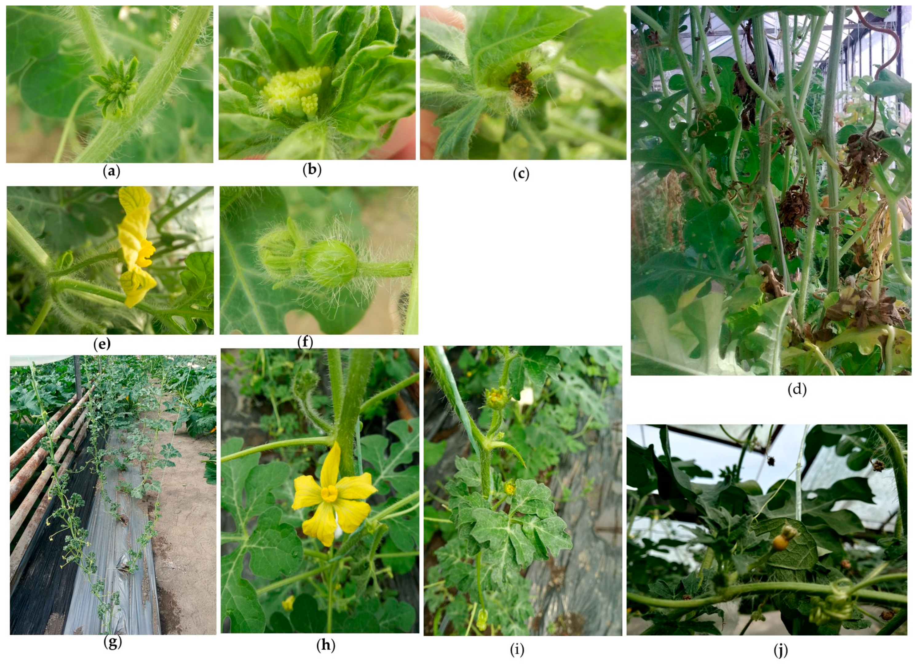 - Li, Y.; Yang, H.; Yang, J.; Yang, D. A Apetalous Gynoecious Mutant in Watermelon. Cucurbit Genet. Coop. Rep. 2009, 31–32, 15–16. [Google Scholar]