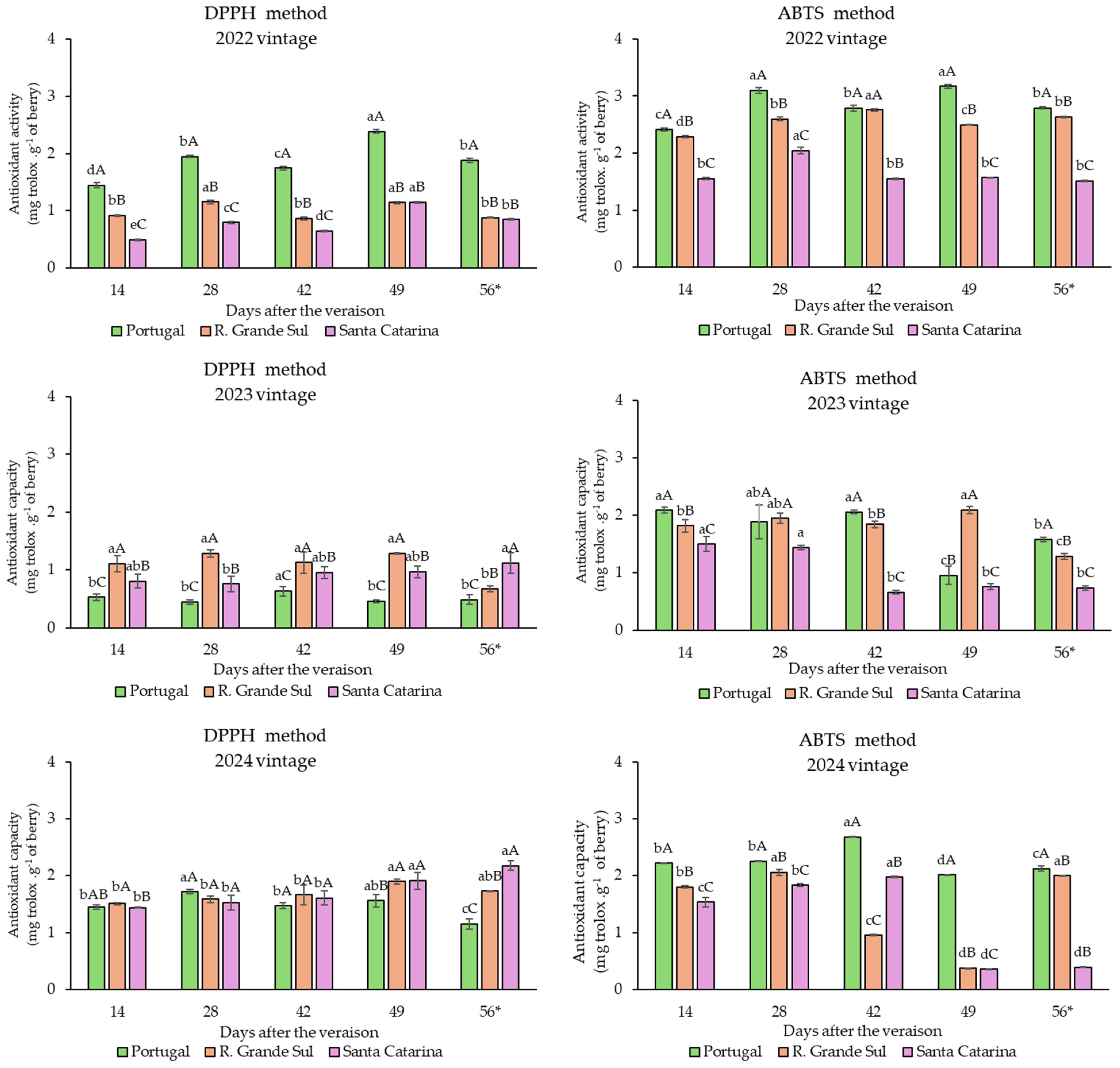 | 2024 | Portugal | 2.82 ± 0.00 Cd | 2.98 ± 0.00 Cc | 3.29 ± 0.00 Ca | 3.27 ± 0.02 Ca | 3.15 ± 0.01 Cb | |