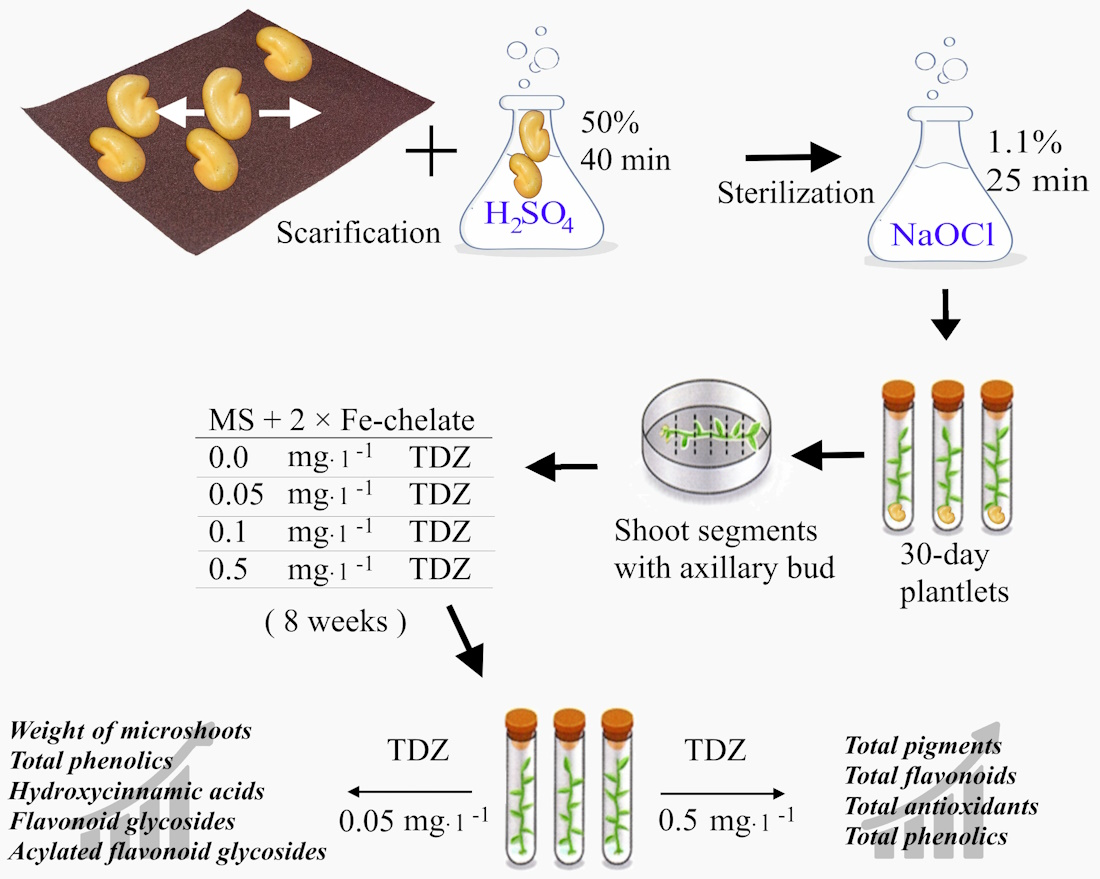 - Yorgancilar, M.; Erisen, S. The effect of thidiazuron (TDZ) on shoot regeneration of Astragalus schizopterus. J. Anim. Plant Sci. 2011, 21, 519–524. Available online: https://www.researchgate.net/publication/263746945_The_effect_of_Thidiazuron_TDZ_on_shoot_regeneration_of_Astragalus_schizopterus (accessed on 22 March 2026).