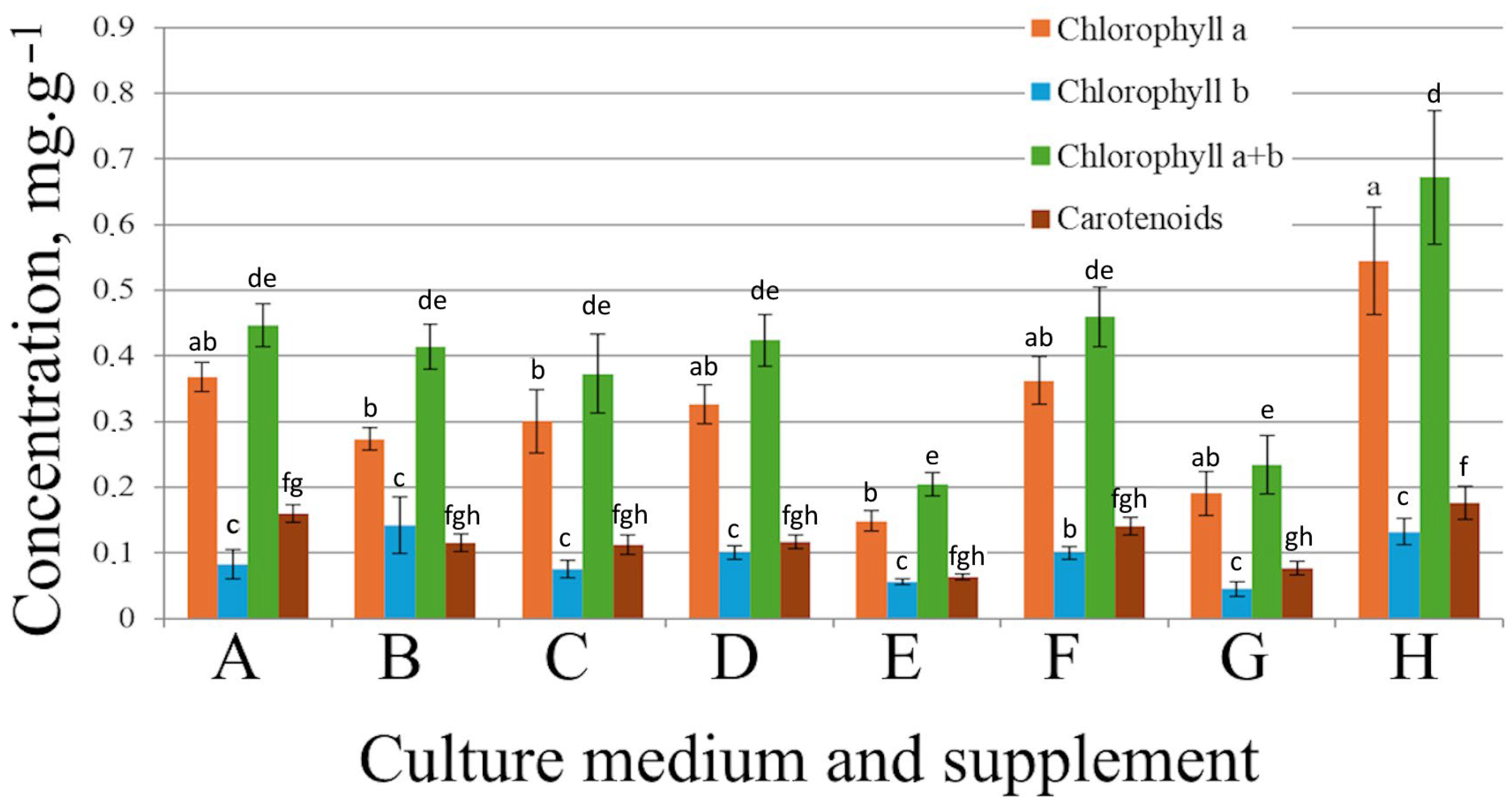 - Lichtenthaler, H.K. Chlorophylls and carotenoids: Pigments of photosynthetic biomembranes. Methods Enzymol. 1987, 148, 350–382. [Google Scholar] [CrossRef]