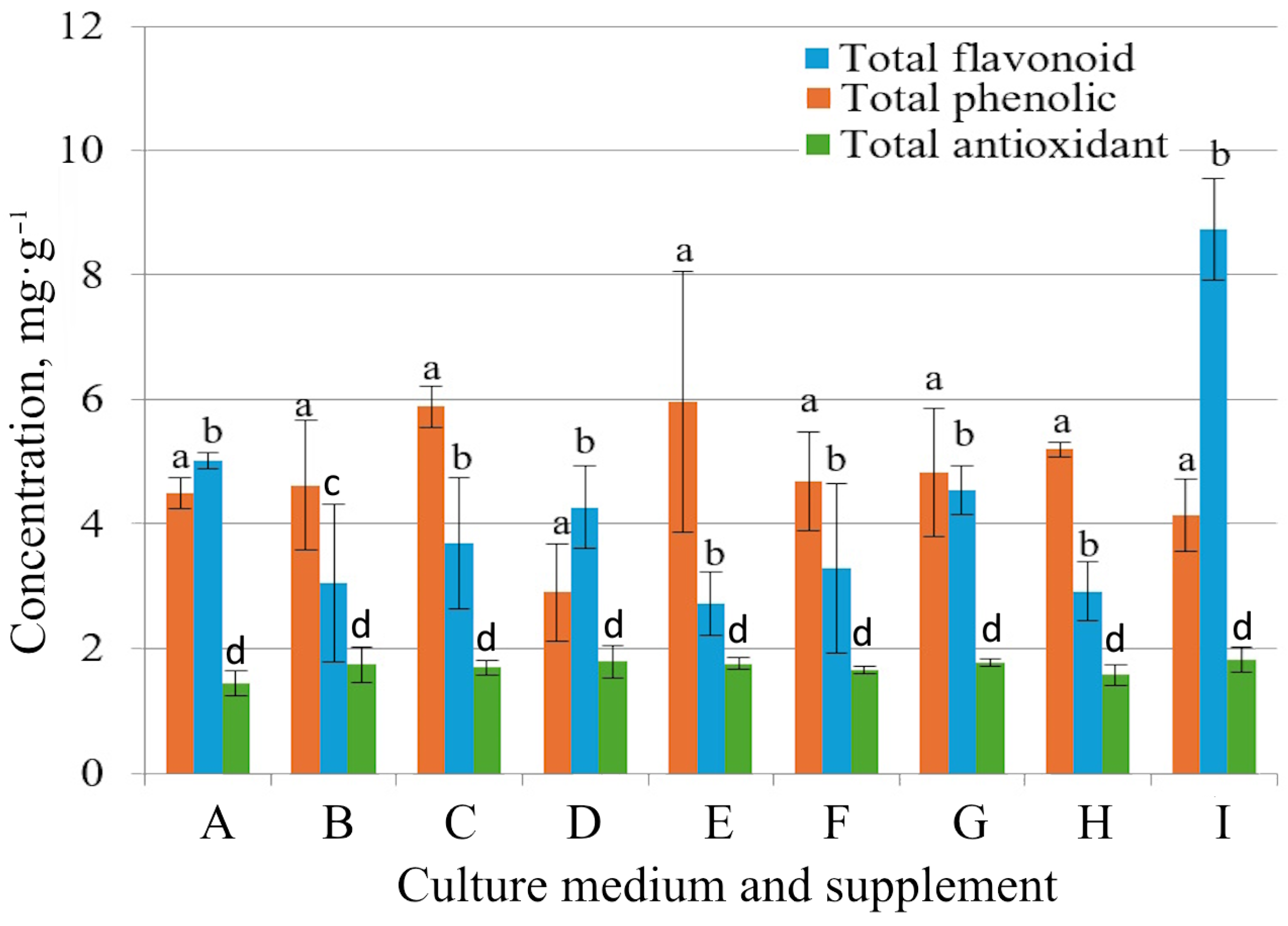 3.3. Concentrations of Phenolics and Flavonoids and Their Associated Antioxidant Activity in A. glycyphyllos Microshoots