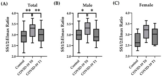 | Parameter | Male Control | Male COVID-19 T0 | Male COVID-19 T1 |