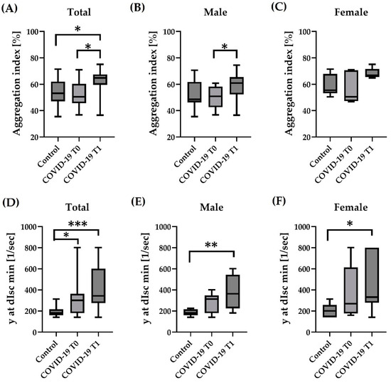 - Nader, E.; Nougier, C.; Boisson, C.; Poutrel, S.; Catella, J.; Martin, F.; Charvet, J.; Girard, S.; Havard-Guibert, S.; Martin, M.; et al. Increased blood viscosity and red blood cell aggregation in patients with COVID-19. Am. J. Hematol. 2022, 97, 283–292. [Google Scholar] [CrossRef]