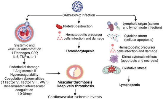 - Rahman, A.; Niloofa, R.; Jayarajah, U.; De Mel, S.; Abeysuriya, V.; Seneviratne, S.L. Hematological Abnormalities in COVID-19: A Narrative Review. Am. J. Trop. Med. Hyg. 2021, 104, 1188–1201. [Google Scholar] [CrossRef] [PubMed]