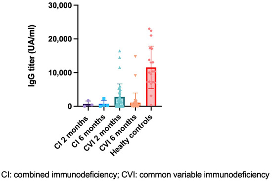 3.1. Antibody Response: Anti-SARS-CoV-2 IgG Value Evaluated Immediately after the Second Dose and after Six Months and Compared to Healthy Subjects