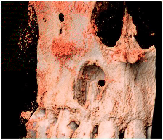 Surgical inspection after the local surgery of the excisional biopsy showed a cortical bone surrounding the lesion, which appeared cribriform (Figure 6 and Figure 7).