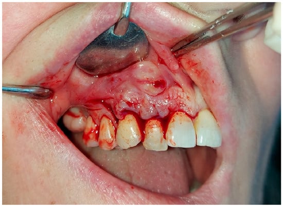 A 65-year-old female patient came to our attention due to an exophytic lesion in correspondence with the upper right lateral incisor. The patient’s medical history did not report any positivity for relevant disease.