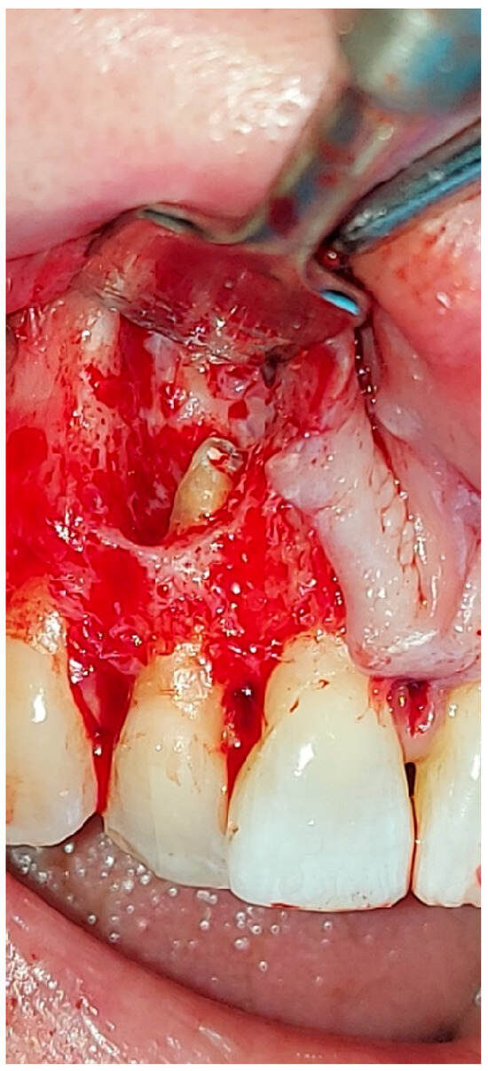 Lateral incisor after performing treatment of apicoectomy with mineral trioxide aggregate (MTA) applications.