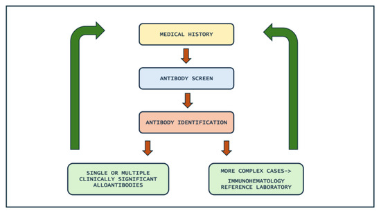 A multistep flow chart of the antibody identification may be useful to improve transfusion safety, reduce risk for transfusion reactions and hemolysis and improve transfusion effectiveness. In addition, it may simplify the process and possibly reduce trivial errors in workflow.