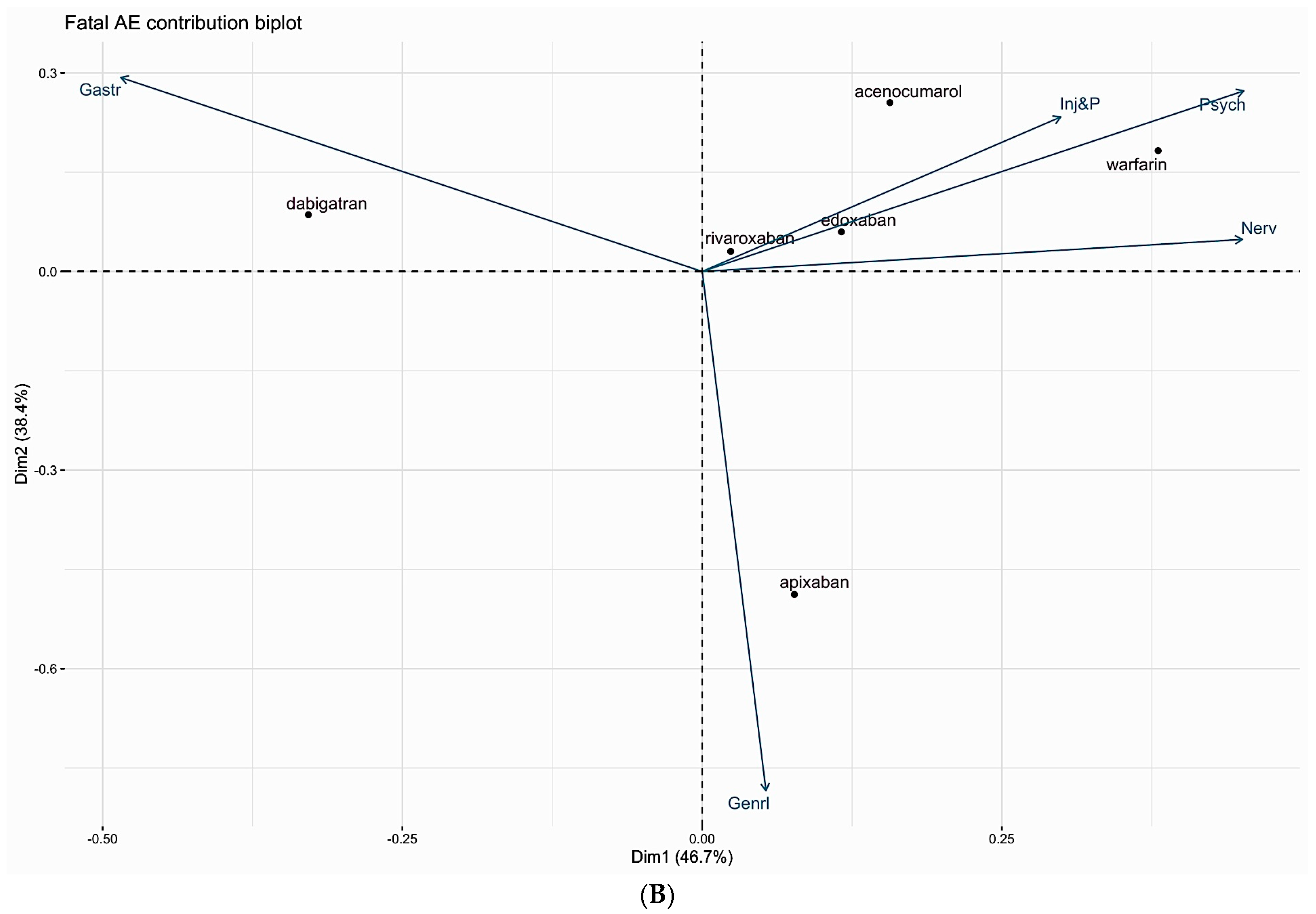 - Cabarrot, A.; Montastruc, J.L.; Chebane, L.; Rousseau, V.; Bondon-Guitton, E.; Moulis, F.; Durrieu, G.; Bagheri, H.; Montastruc, F. Neurological and Digestive Bleeding with Direct Oral Anticoagulants versus Vitamin K Antagonists: The Differences Do Not Stop There! A Pharmacovigilance Study. Pharmacol. Res. 2017, 118, 119–120. [Google Scholar] [CrossRef]