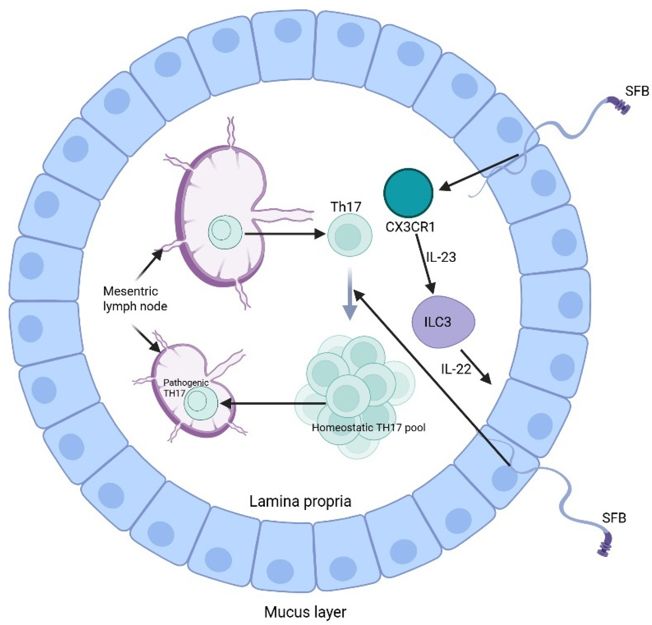 Figure 1. Induction of Th17 by segmented filamentous bacteria (SFB) (Created in https://BioRender.com).