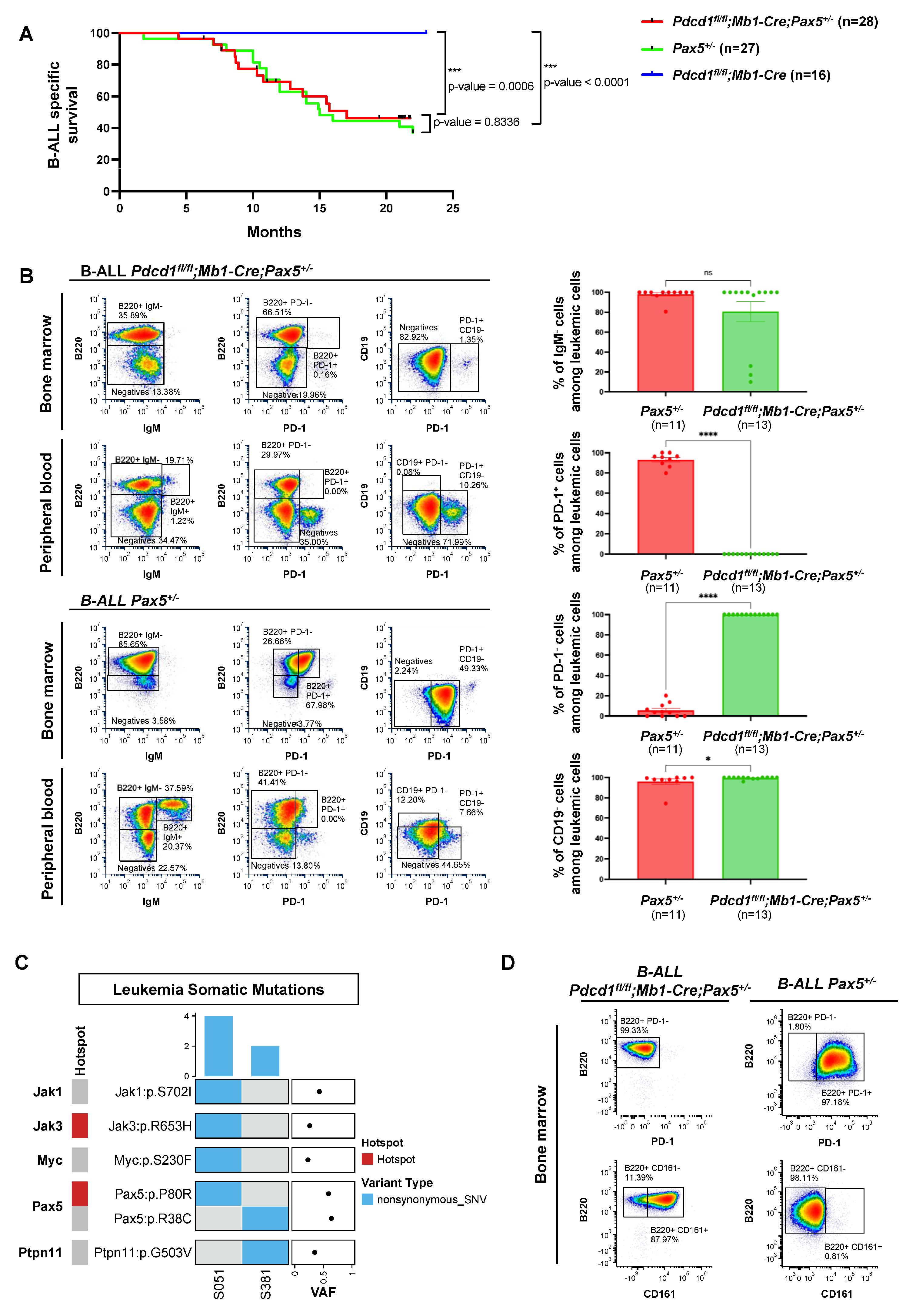 3.3. PD-1 Is Not Required for Pax5-Dependent B-Cell Leukemogenesis
