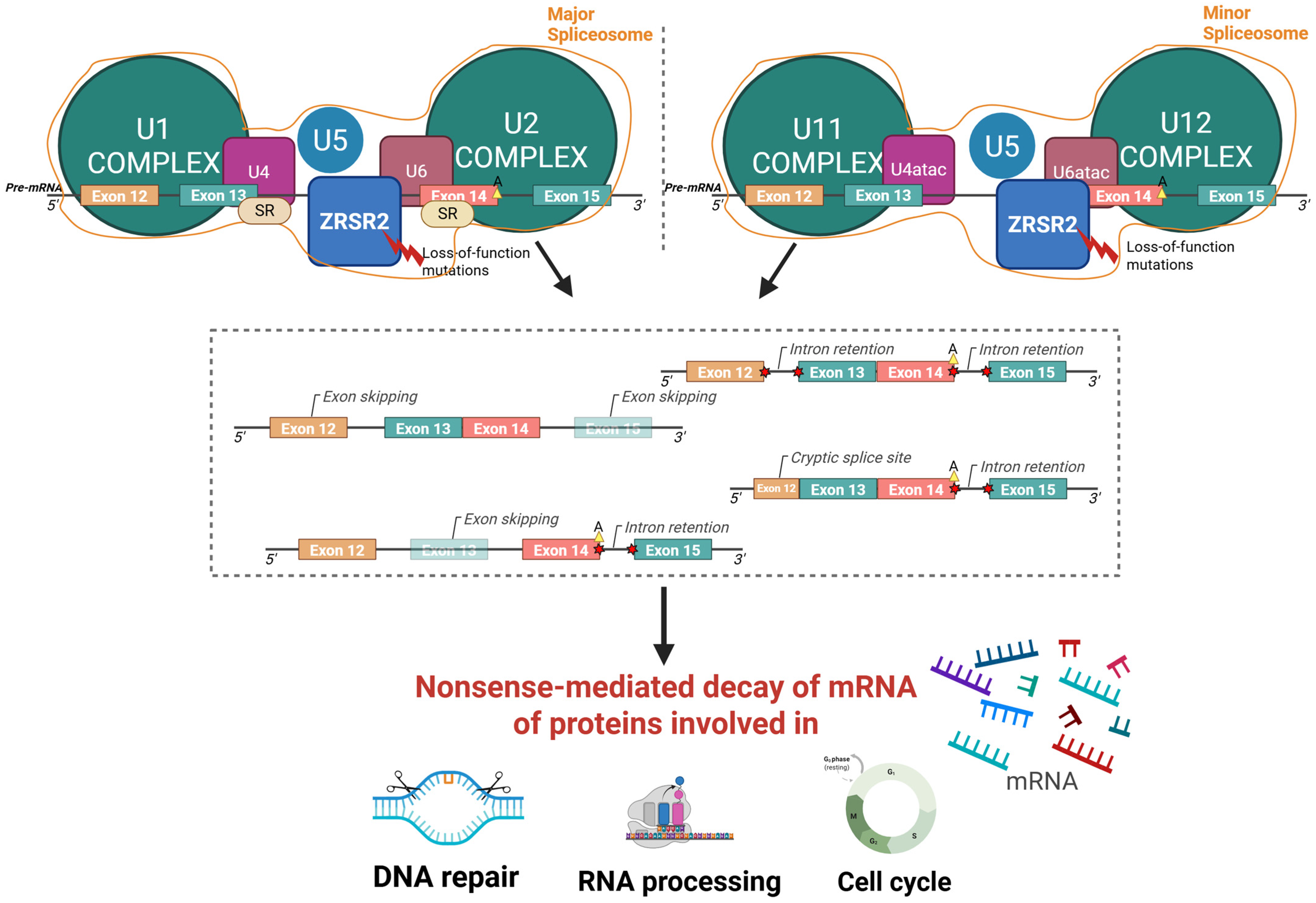 - Yacout, M.; Katamesh, B.; Jabban, Y.; He, R.; Viswanatha, D.; Jevremovic, D.; Greipp, P.; Bessonen, K.; Palmer, J.; Foran, J.; et al. Characterisation and prognostic impact Of ZRSR2 mutations in myeloid neoplasms. Leukemia 2024, 38, 2727–2730. [Google Scholar] [CrossRef] [PubMed]