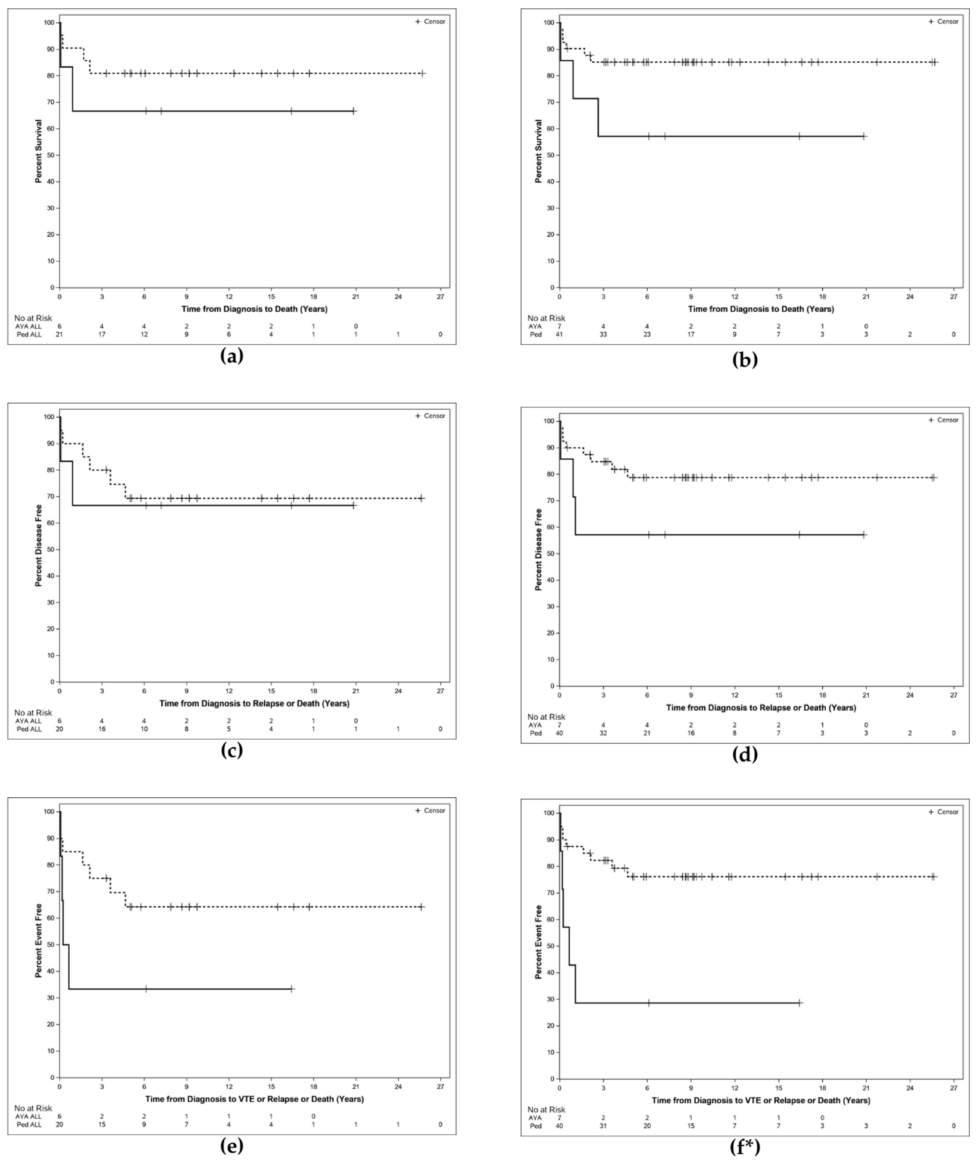 - Shimony, S.; Raman, H.S.; Flamand, Y.; Keating, J.; Paolino, J.D.; Valtis, Y.K.; Place, A.E.; Silverman, L.B.; Sallan, S.E.; Vrooman, L.M.; et al. Venous thromboembolism in adolescents and young adults with acute lymphoblastic leukemia treated on a pediatric-inspired regimen. Blood Cancer J. 2024, 14, 191. [Google Scholar] [CrossRef]