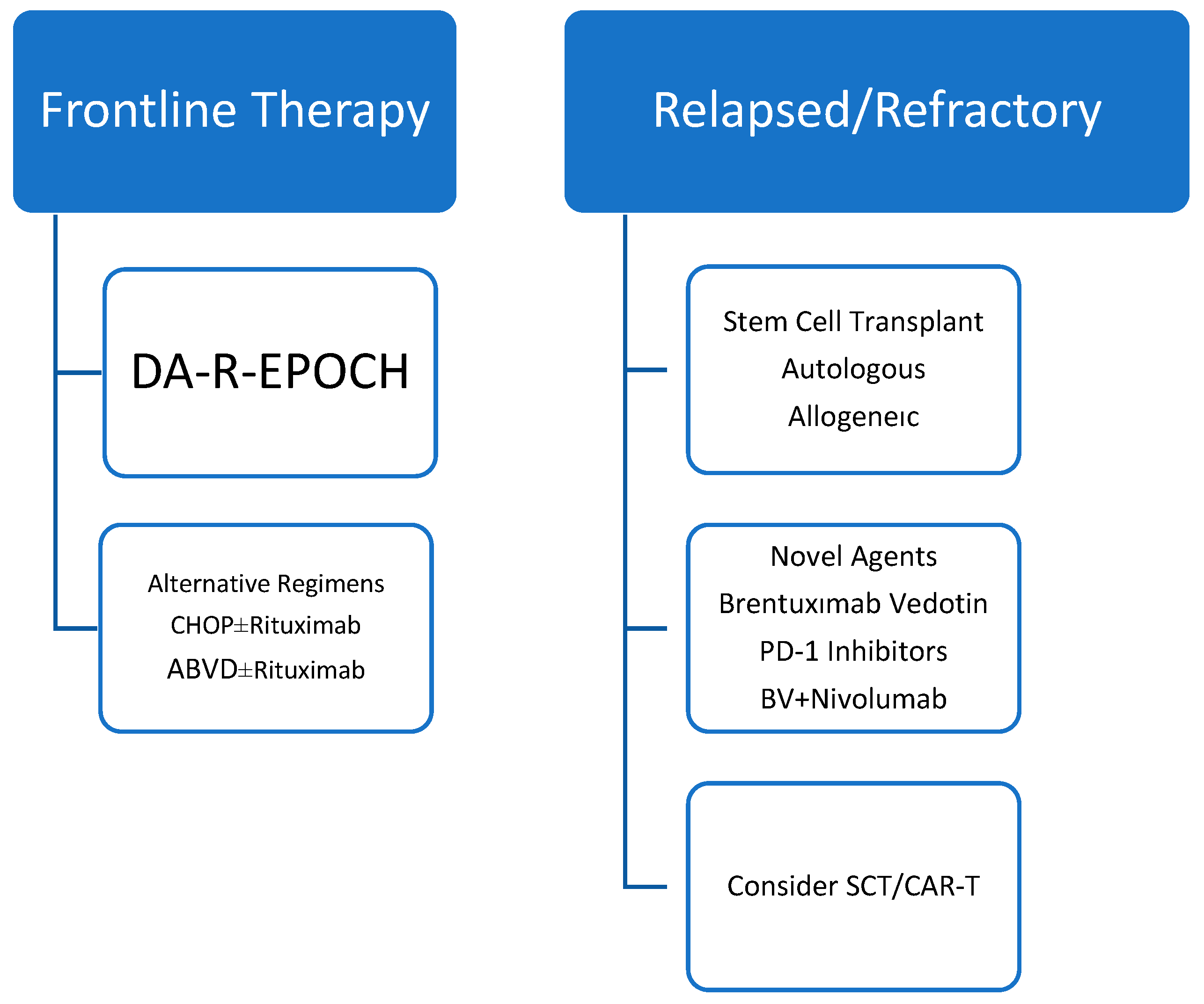 | Advanced salvage | CAR-T/SCT-based cellular therapy | Extrapolated evidence | Data derived from PMBL/DLBCL; MGZL-specific outcomes scarce |