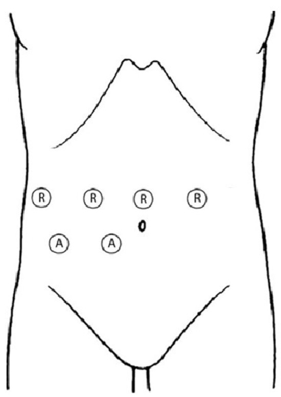 Trocar position for left hemi liver resections.
