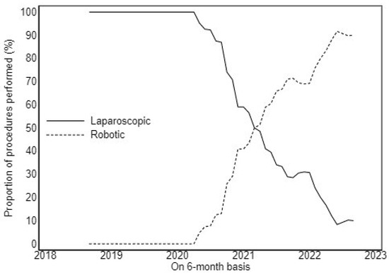 The diffusion of the robotic platform has exponentially increased in the last 10 years, showing that there is a low level of evidence concerning the cost as a substantial limit [22,23] and that in centers with a solid training program, the learning curve is faster compared to laparoscopic procedures and also for major resections [24,25,26].