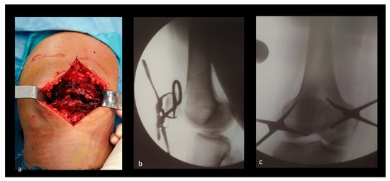 - Lee, B.-J.; Chon, J.; Yoon, J.-Y.; Jung, D. Modified Tension Band Wiring Using FiberWire for Patellar Fractures. Clin. Orthop. Surg. 2019, 11, 244–248. [Google Scholar] [CrossRef] [PubMed]
