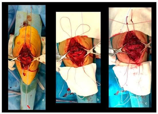 Chicago/Turabian StyleItro, Annalisa, Annalisa De Cicco, Gianluca Conza, Luca Schiavo, Niccolò Garofalo, Adriano Braile, Francesco Nappi, and Giuseppe Toro. 2024. "Modified Tension Band Wiring Using Only Non-Absorbable Braided Polyblend Sutures for the Treatment of Patellar Fractures" Surgical Techniques Development 13, no. 2: 227-236. https://doi.org/10.3390/std13020015