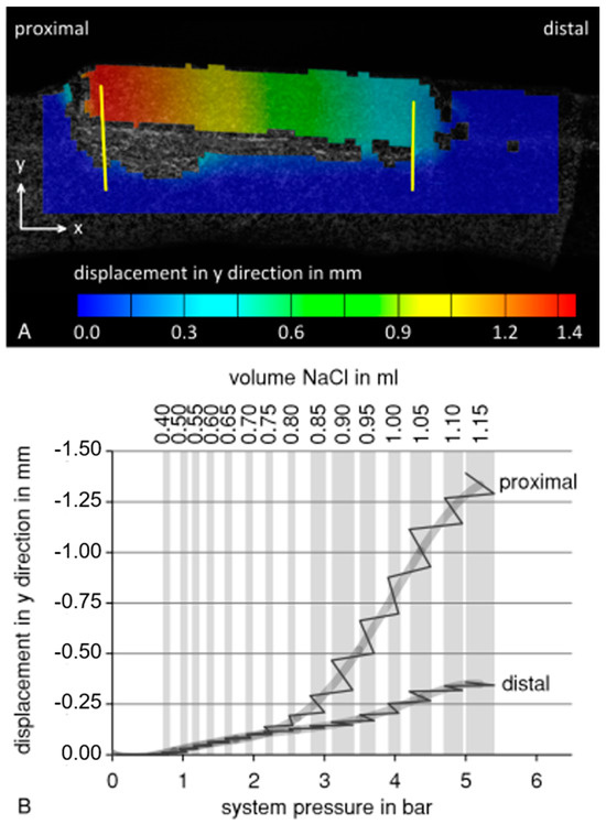 Thus, the artificial callus material on the proximal side was subjected to a higher load, undergoing plastic deformation, even with a relatively low filling volume. In order to prevent the rupture of the newly formed callus tissue on the proximal side and the premature consolidation on the distal side in vivo, distraction speed should be approximately consistent along the bone fragment. In order to achieve this, the medullary cavity could be extended to a uniform diameter before implanting the balloon catheter, or the shape of the balloon could be adapted. Indeed, the balloon catheter test showed that the elevated system pressure led to a time-delayed plastic deformation of the artificial callus material during the intervals with a constant filling volume. Consequently, the stress applied to the callus material would be gradually decreased, thereby avoiding the rupture of the callus. When callus expansion is performed in vivo, a stress reduction within the living callus can be expected due to the growth and relaxation of the biological tissue [4,11,31].