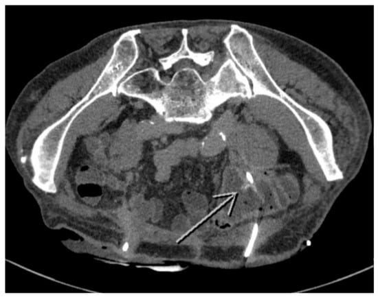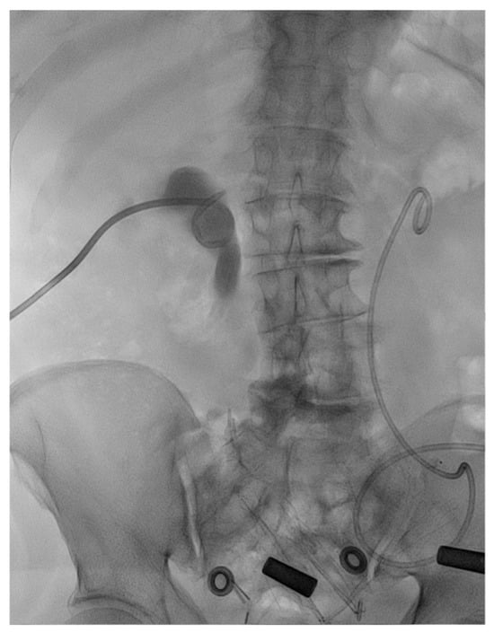 - Lee, W.K.; Chang, S.D.; Roche, C.J.; Duddalwar, V.A.; Rowley, V.A.; McLoughlin, M.G. Spontaneous ureterocolic fistula secondary to calculous pyohydroureteronephrosis. Br. J. Radiol. 2005, 78, 954–955. [Google Scholar] [CrossRef] [PubMed]