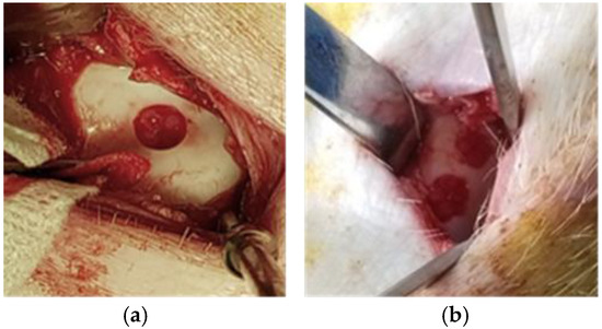 Cartilage lesion creation: (a) Domestic pig showing one trochlear cartilage lesion; (b) Göttingen mini-pig two trochlear cartilage lesions.