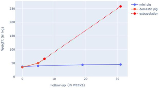 Göttingen mini-pigs (G-MPs) are an interesting model because the skeletally mature adult animal has a maximum weight of 45–50 kg [15]. This limited weight gain allows for easier handling by the host facility and the possibility to increase the sample size without overloading the animal caregivers.