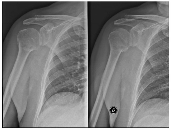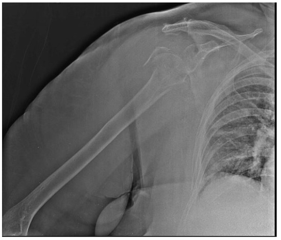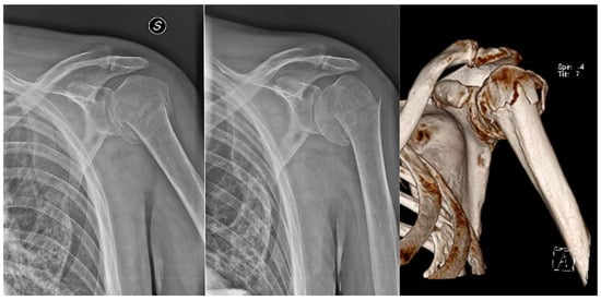 - Mostowfi Zadeh, D.; Abdelghafour, K.; Assiotis, A. Proximal Humerus Fracture/Dislocation: Look for the Greater Tuberosity. Cureus 2023, 15, e33795. [Google Scholar] [CrossRef] [PubMed] [PubMed Central]