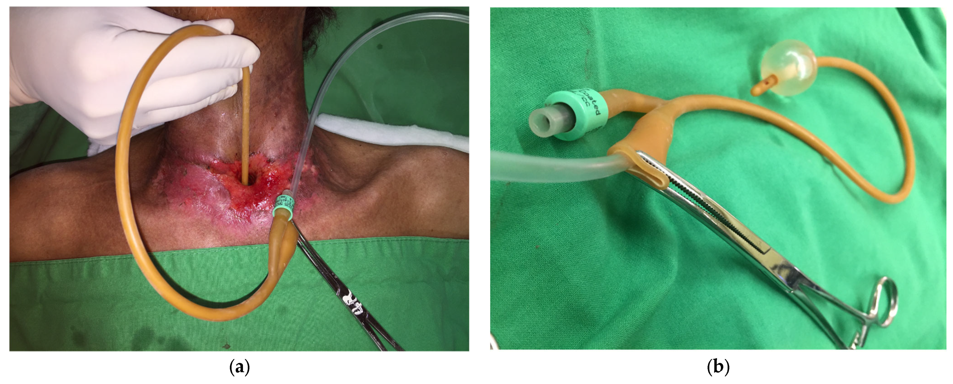 - MacKeith, S.A.C.; Pankhania, M.; Hettige, R.; Gurr, P. Balloon dilatation of tracheostomal stenosis with cuffed tracheostomy tube. A novel approach to tracheostomal dilatation. Laryngoscope 2011, 121, 583–584. [Google Scholar] [CrossRef] [PubMed]