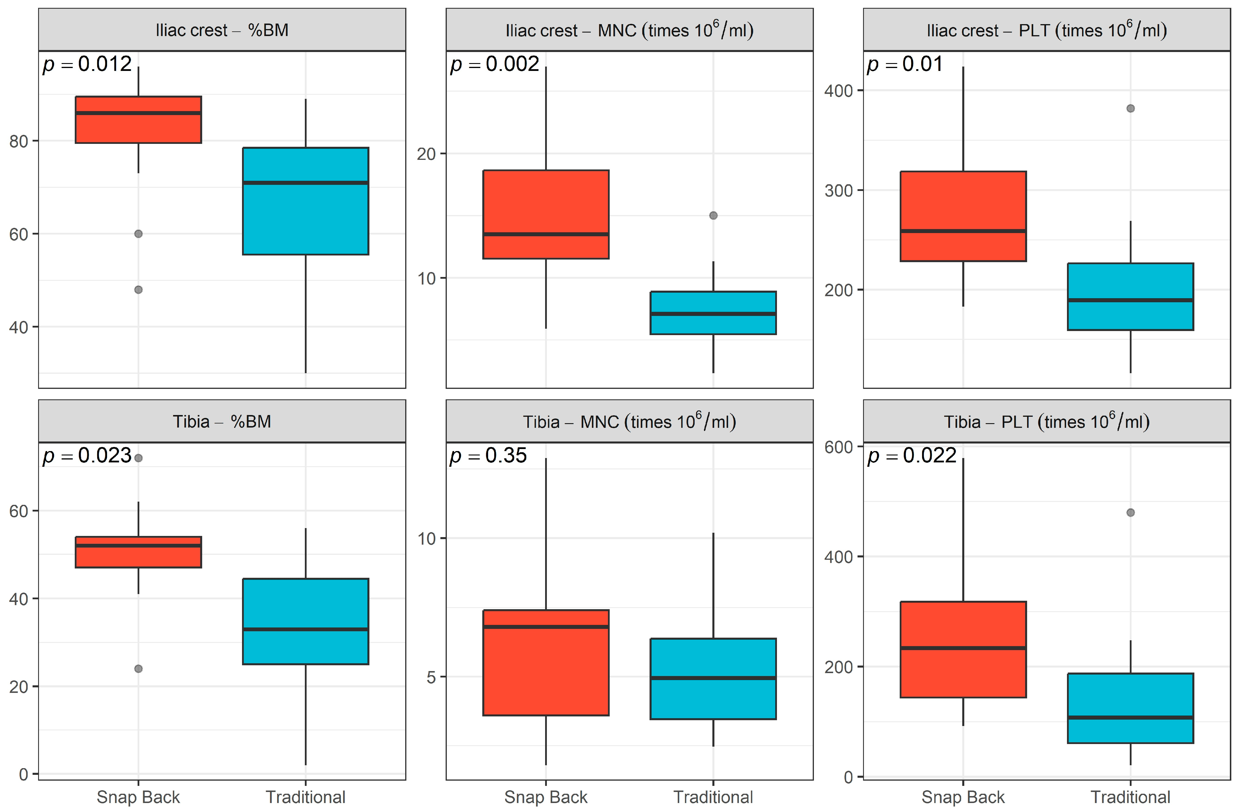 3.5. Snap-Back Aspiration: Comparison Between Iliac Crest and Tibia