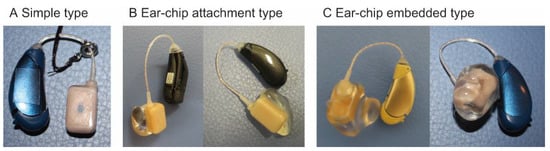 - Options for the Compensation of Hearing Loss; Different from Air and Bone Conduction Hearing Aids. Available online: http://www.jibika.or.jp/citizens/hochouki/sentaku.html (accessed on 29 April 2021).