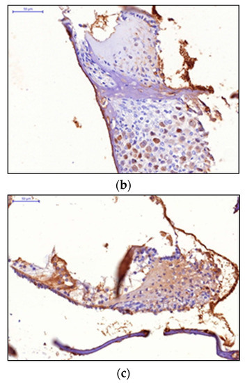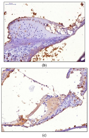 HIF-1 expression in the cells of the receptor apparatus and the cells of the spiral ganglion: (a) Therapeutic dose 5 mg/kg; (b) Therapeutic dose 7 mg/kg; (c) Therapeutic dose 10 mg/kg.