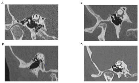- Branstetter, B.F., IV; Harrigal, C.; Escott, E.J.; Hirsch, B.E. Superior semicircular canal dehiscence: Oblique reformatted CT images for diagnosis. Radiology 2006, 238, 938–942. [Google Scholar] [CrossRef]
