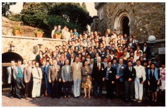 McKusick was co-founder of the European School of Genetic Medicine (www.eurogene.org, accessed on 17 September 2021) and had a special relationship with Italy, the Country where the courses in medical genetics took place (Figure 1 and Figure 2). In McKusick’s obituary, Giovanni Romeo (professor of medical genetics at the University of Bologna) wrote “Victor was a living legend both at Johns Hopkins Hospital where he spent all his professional life, starting as a medical student in 1943, and all over the world. His presence on the international scene of modern Medical Genetics has been so prominent (from the launching of the 1st Birth Defects Conference to the organization of the Human Gene Mapping conferences together with Frank Ruddle and to the foundation of HUGO-Human Genome Organization) and his scientific achievements have been so numerous that I will have to concentrate only on his links with Europe using many personal memories arising from the courses of the European School of Genetic Medicine. He founded the School in 1988 in collaboration with many European medical geneticists who were to become the leaders of the newly reorganized European Society of Human Genetics a few years later (in 1990)” [].