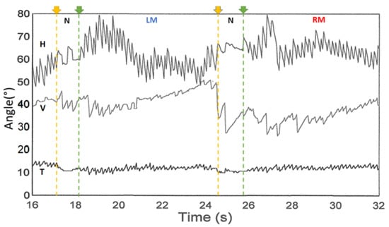 Three-dimensional recording of a positive test (BCV) (left severe unilateral vestibular lesion) from Dumas and Michel. Valeur sémeiologique du test de vibration osseux crânien. In: IPSEN, editor. XXXIème Symposium International d’Otoneurologie, Liège, Belgium (1997). The three components are observed H: Horizontal, V: Vertical, and T: Torsional. N: no stimulation; LM: Left mastoid stimulation; and RM: Right mastoid stimulation (VNG 3D recording device MFR-TOR3.4, Synapsys, Marseille, France).
