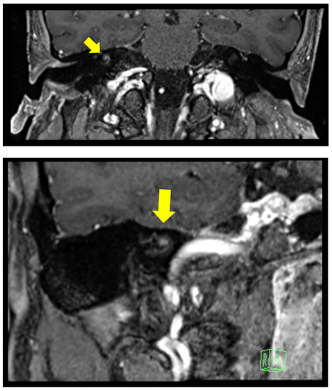 - Tieleman, A.; Casselman, J.W.; Somers, T.; Delanote, J.; Kuhweide, R.; Ghekiere, J.; De Foer, B.; Offeciers, E.F. Imaging of intralabyrinthine schwannomas: A retrospective study of 52 cases with emphasis on lesion growth. Am. J. Neuroradiol. 2008, 29, 898–905. [Google Scholar] [CrossRef] [PubMed] [Green Version]