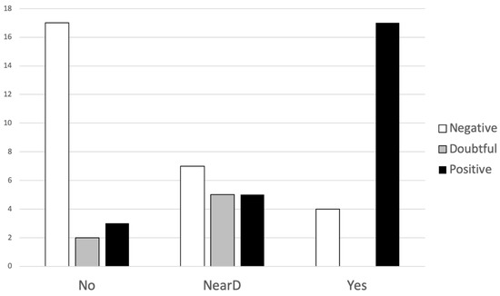 Type of HFoVEMP to superior semicircular canal finding in CT scan. No: normal CT, NearD: near-dehiscence, Yes: definite SCD.