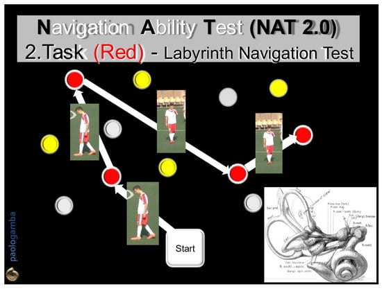 - Gamba, P.; Guidetti, R.; Guidetti, G. Navigation Ability Test: A new specific test to asses spatial orientation ability in football players and healthy. J. Sports Med. Phys. Fit. 2020, 60, 934–941. [Google Scholar] [CrossRef] [PubMed]