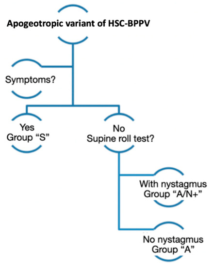 - Riga, M.; Korres, S.; Korres, G.; Danielides, V. Apogeotropic variant of lateral semicircular canal benign paroxysmal positional vértigo: Is there a correlation between clinical findings, underlying pathophysiologic mechanisms and the effectiveness of repositioning maneuvers? Otol. Neurotol. 2013, 34, 1155–1164. [Google Scholar] [CrossRef]