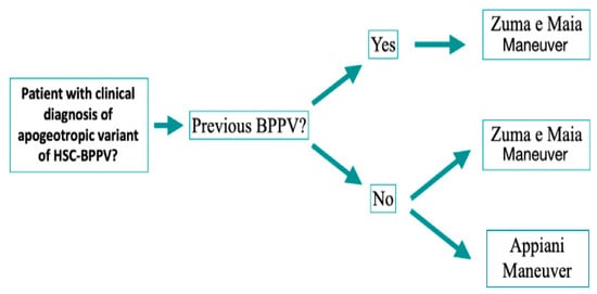 Alvarez de Linera-Alperi, M.; Garaycochea, O.; Calavia, D.; Terrasa, D.; Pérez-Fernández, N.; Manrique-Huarte, R. Apogeotropic Horizontal Canal Benign Paroxysmal Positional Vertigo: Zuma e Maia Maneuver versus Appiani Variant of Gufoni. Audiol. Res. 2022, 12, 337-346. https://doi.org/10.3390/audiolres12030035