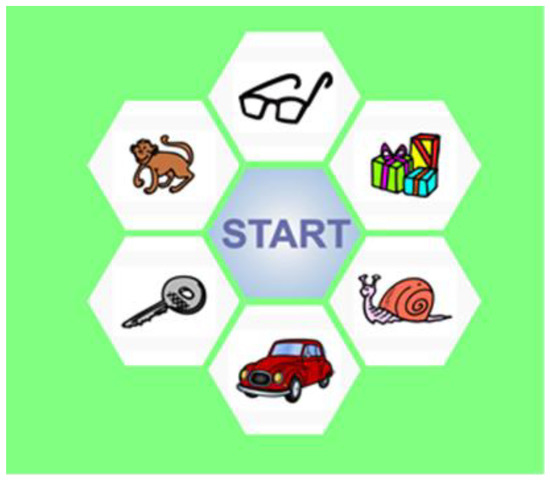 Pictures for the Maltese AAST were based on the same 3 criteria used in other AAST versions [21,24,25]. They were all in the same style, colored and in JPG format (201 × 174 pixels). The pictures were piloted on 20 children, aged 3–4 years old. More than 95% of the children recognised all the pictures except for one. The picture was changed, and following retesting, the word was replaced. After retesting, all the pictures were deemed appropriate for the test. See Figure 1.
