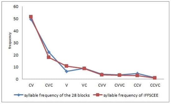 Comparison of syllabic frequencies of the keywords in the 28 lists and in the IFFSCEE.