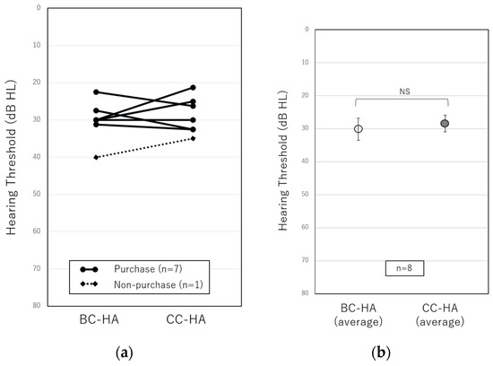 The limitations of this study included the low number of non-purchasers, which resulted in an imbalance between purchasers and non-purchasers. In particular, there was only one non-purchaser among the patients with bilateral conductive hearing loss, which was considerably low. It is not possible to perform a statistical analysis separating the CC-HA purchasers and non-purchasers. The acquisition of additional participants was, therefore, necessary. Additionally, because of the low number of non-purchasers, it was thought that patients who were not proactive in purchasing were not very cooperative in examinations, and there were cases where data could not be obtained, suggesting the presence of selection bias. Furthermore, there were many young patients with microtia at our hospital. As a result, confounding factors such as the presence or absence of subsidies for purchases may have been at play.