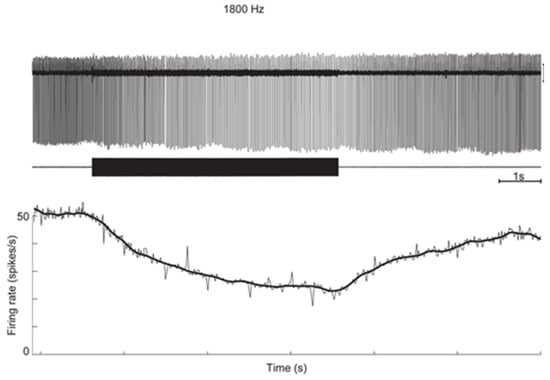 1. A reversal of the slow neural activation to maintained ACS depending on frequency (see Figure 4 of [])—so within an individual neuron, some frequencies caused excitation, and other frequencies caused inhibition, presumably indicating a reversal of endolymph flow at some frequencies;