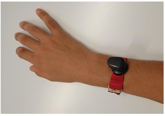 The patient took the device home for a trial and now uses it on an irregular, almost but not quite daily basis, for up to several hours a day. She clearly prefers the position close to the wrist over any placement on the head. For practical reasons (limitation of the movement of her hand), she prefers a position behind the wrist, as shown in Figure 3.