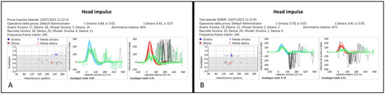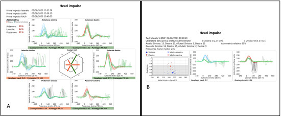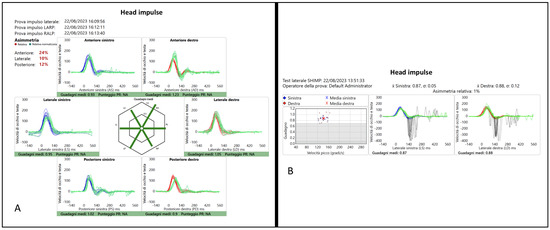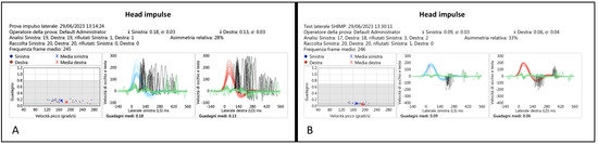(A) Horizontal and vertical vHIT and (B) vSHIMP test plotting in a control subject (n. 6—MA).