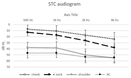 In addition, the result that the thresholds for the lower frequencies were lower (better) than those for the higher frequencies is similar to the results of other STC studies [16]. This result may lead to the suggestion that the STC pathway has its own specific frequency characteristics that are unique to the STC pathway and may contribute to the distinction between it from the other known hearing pathways of air conduction and bone conduction.
